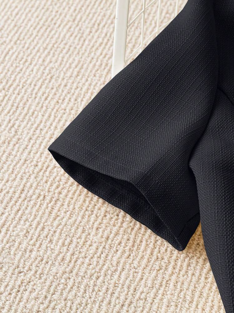 This women's short sleeve blazer combines elegant French style with practical design for office and casual wear. Crafted from 100% woven polyester, it features a non-stretch fabric with a double-breasted placket and faux pearl metal buttons for a refined look. The lapel neckline and regular fit provide comfort and structure, making it ideal for spring and fall temperatures. Its short length and sleeves offer breathability while maintaining a polished silhouette. Care by hand washing or professional dry cleaning ensures lasting quality. Perfect for professional settings and stylish commuter outfits.